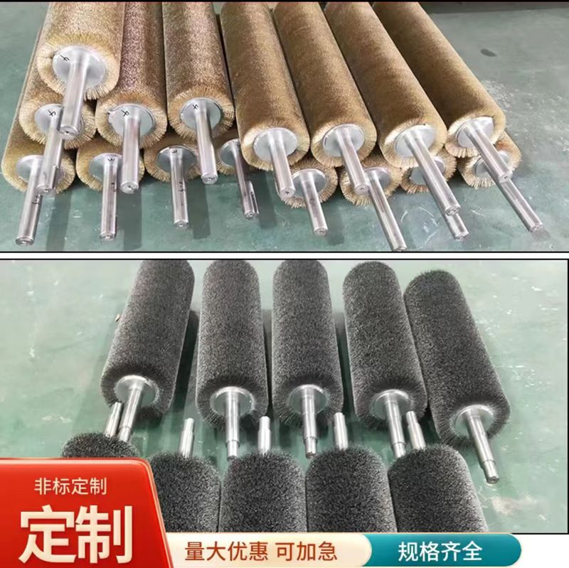 不锈钢轴清洁滚筒刷丝 工业除尘尼龙丝毛刷辊 抛光弹簧刷磨料丝